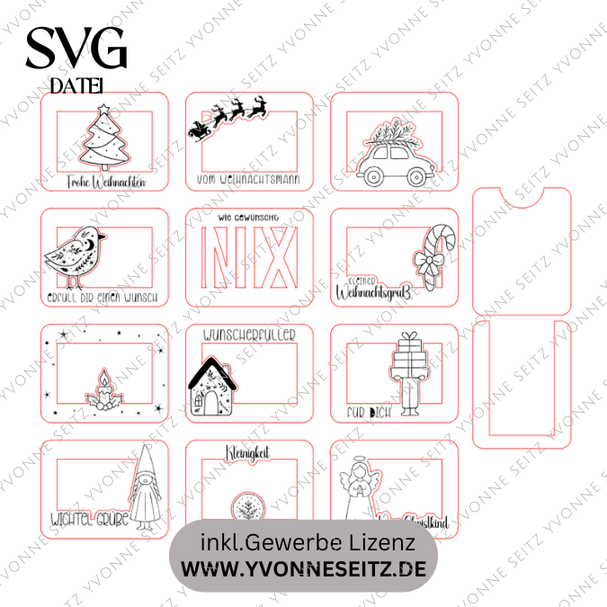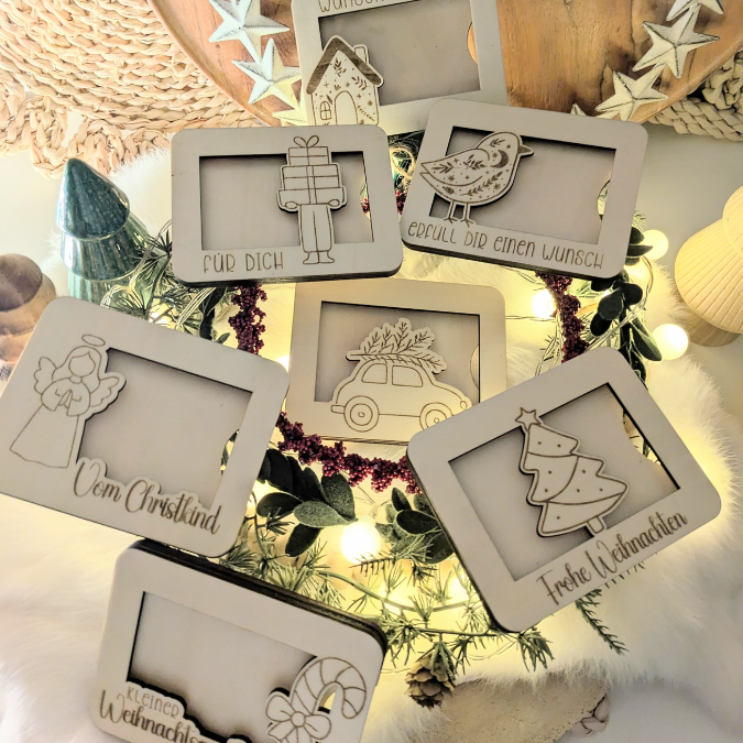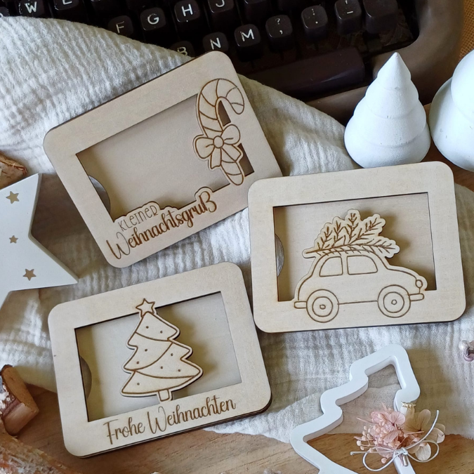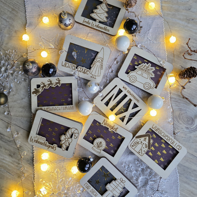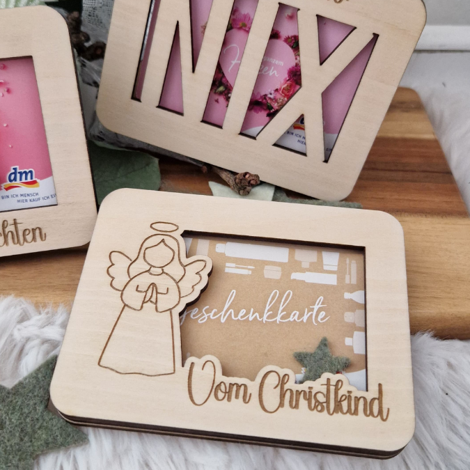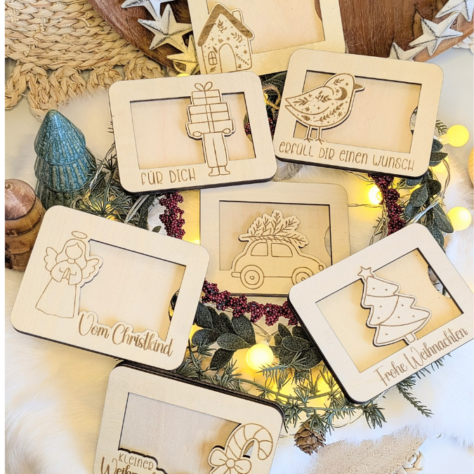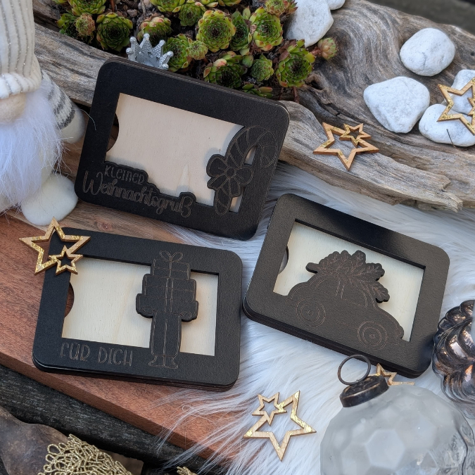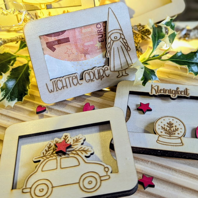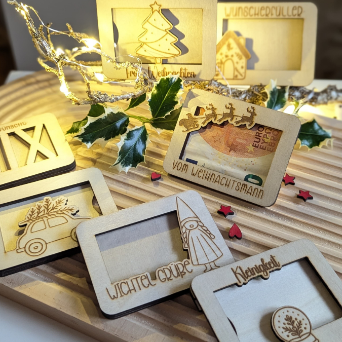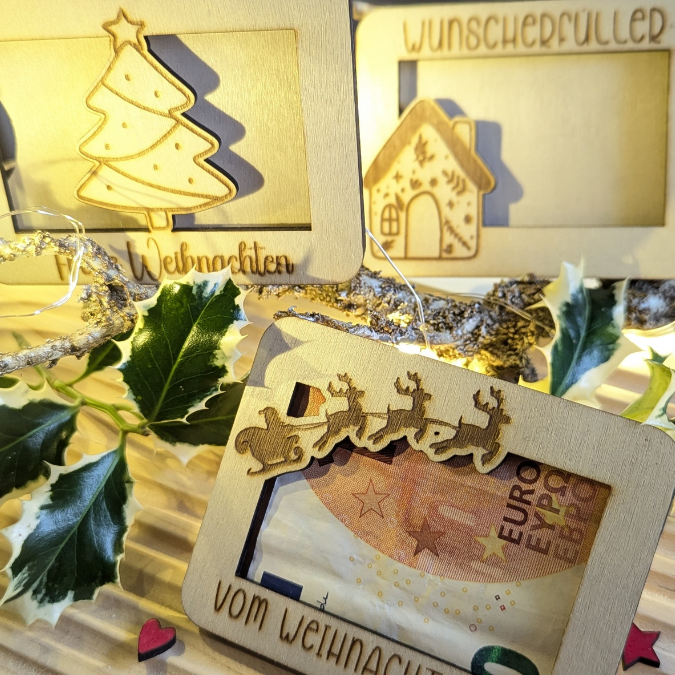 12 Designs Laserdatei Verpackung für Gutscheinkarten Gutscheine Geld Weihnachten Nikolaus Christkind Geldgeschenk Wunschgutschein SVG Datei