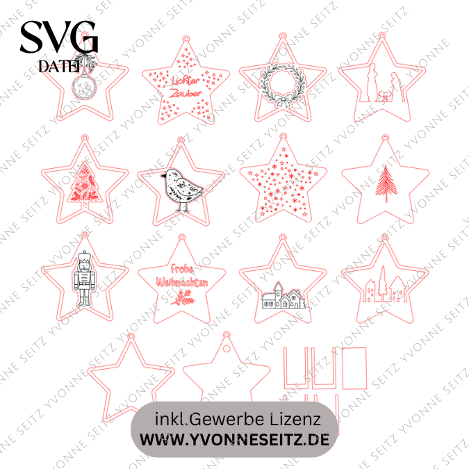12 Designs Lichtsterne Leuchtsterne Sterne zum beleuchten SVG Laser Datei Weihnachten Transparentpapier Leuchtdatei Weihnachtsdeko