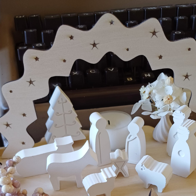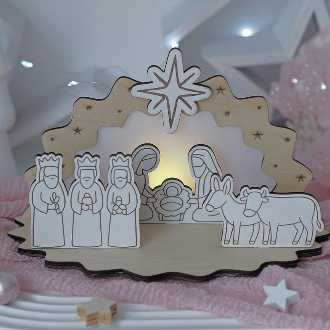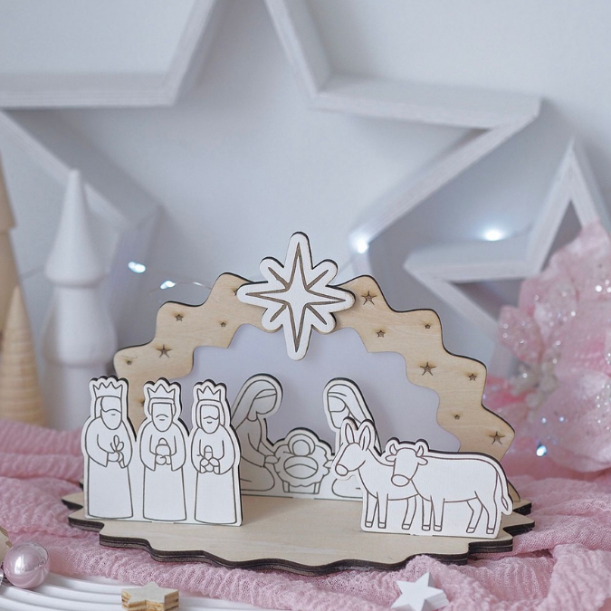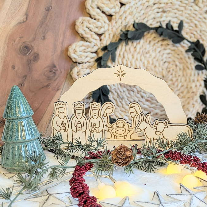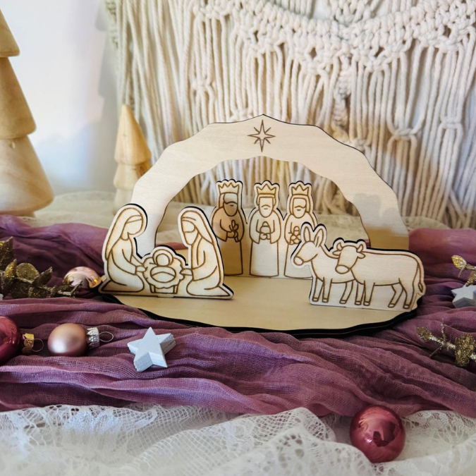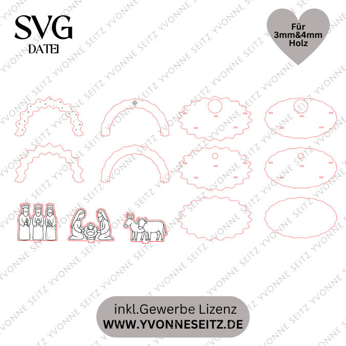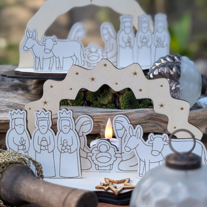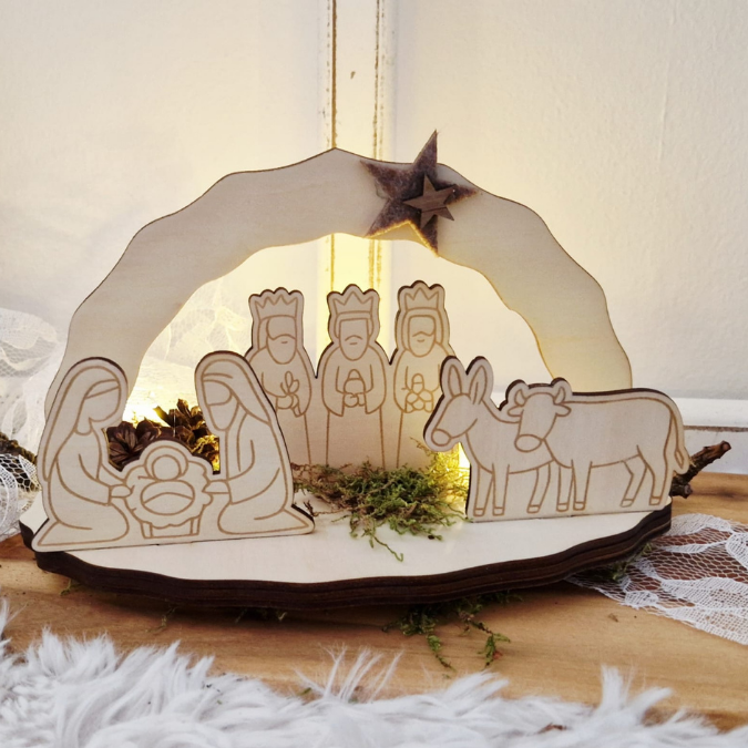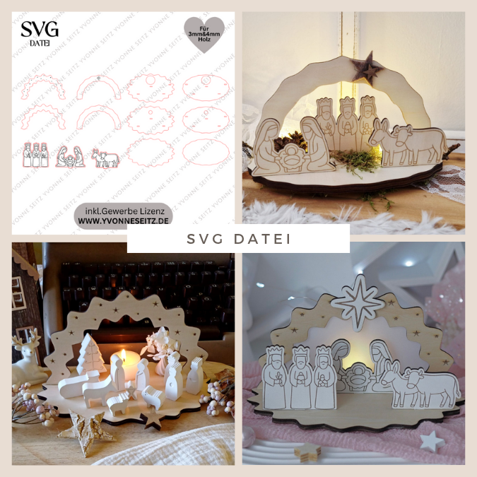 3mm und 4mm Krippe aus Holz mit Figuren zum stecken Kulisse Minikrippe Teller für Krippe SVG Laser Datei Weihnachten Heilige Nacht