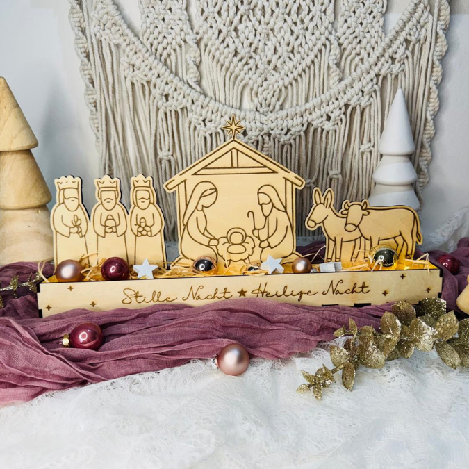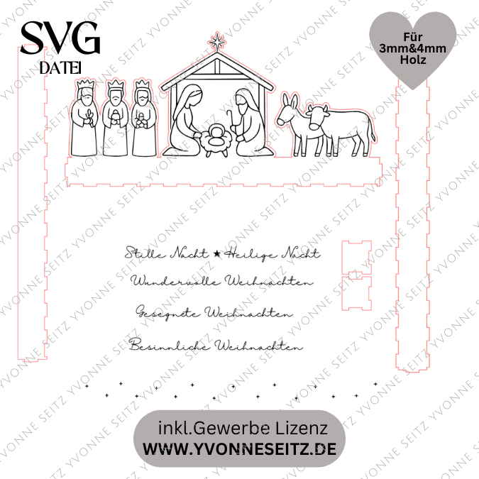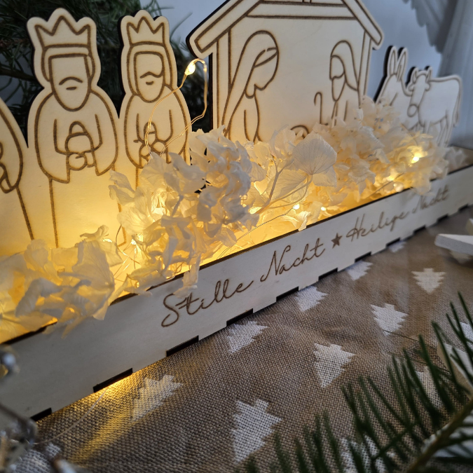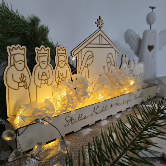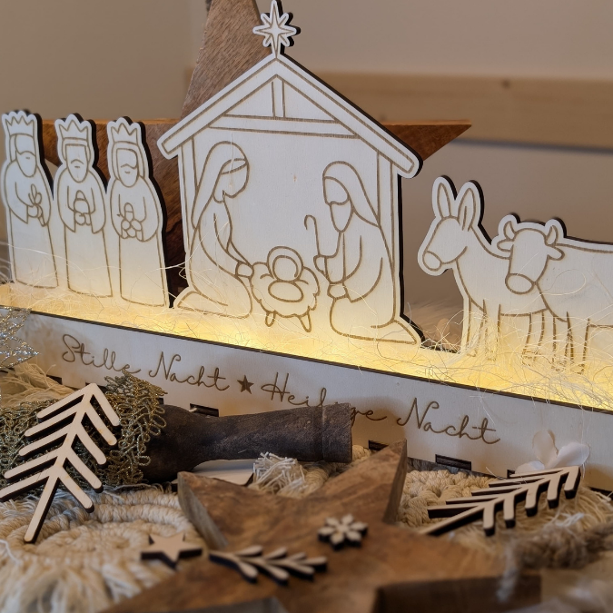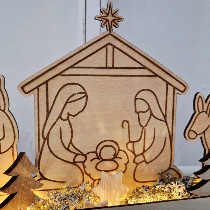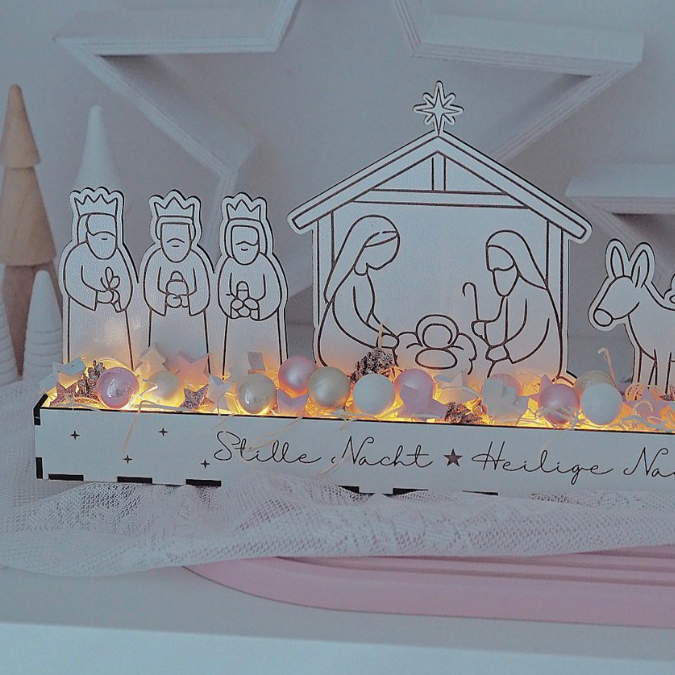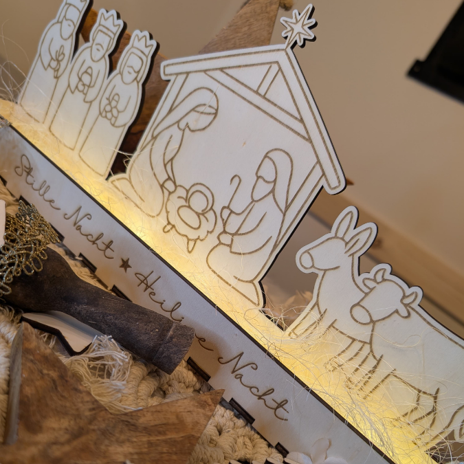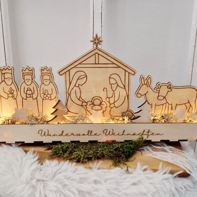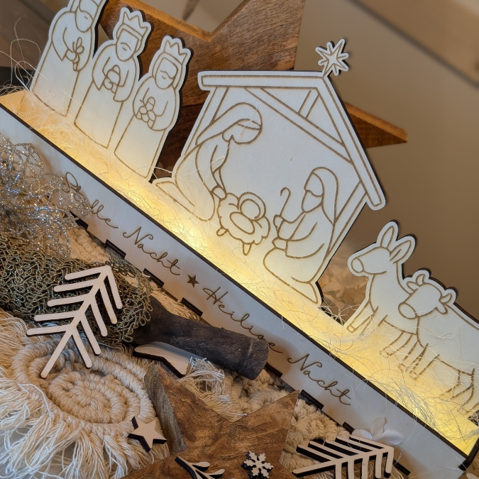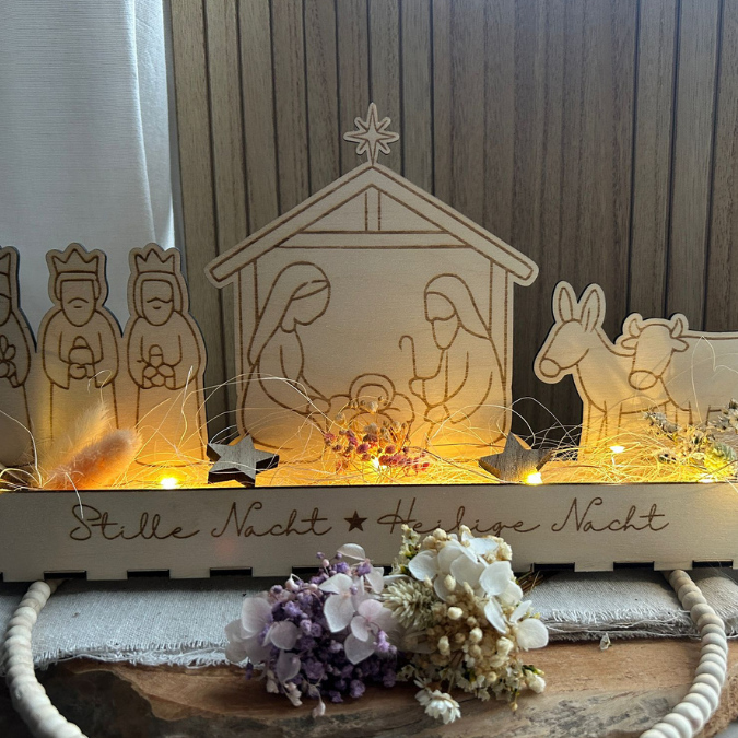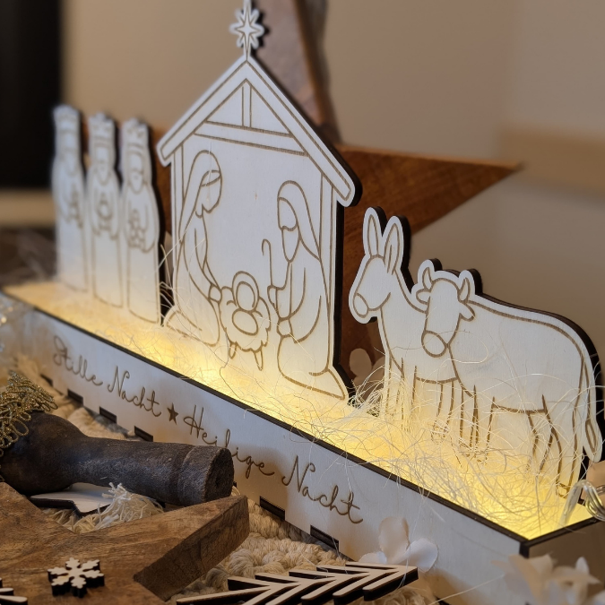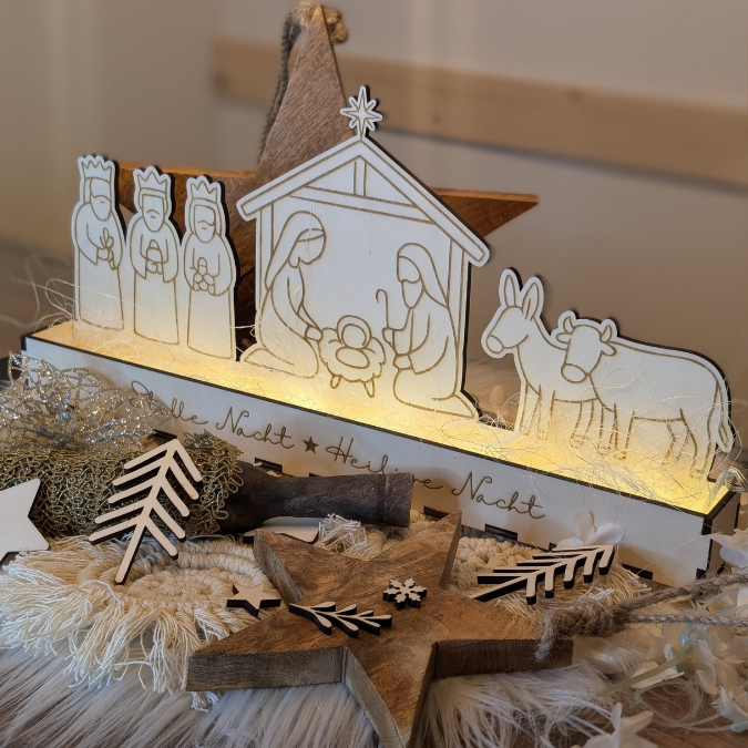 3mm und 4mm Krippe mit Box zum beleuchten Minikrippe SVG Laser Datei Weihnachten Heilige Nacht Krippenkulisse Weihnachtsdeko Weihnachten