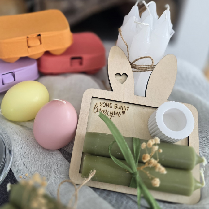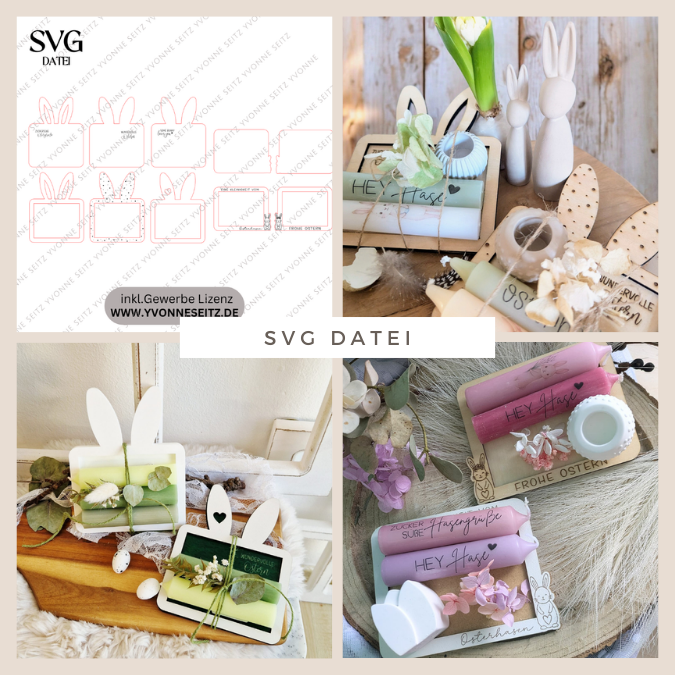 5 Designs SVG Laserdatei Ostern Kerzenbrett Verpackung für Kerzen Nimm dir SVG-Datei Ostermitbringsel Ostergeschenk Laser Hasenohren