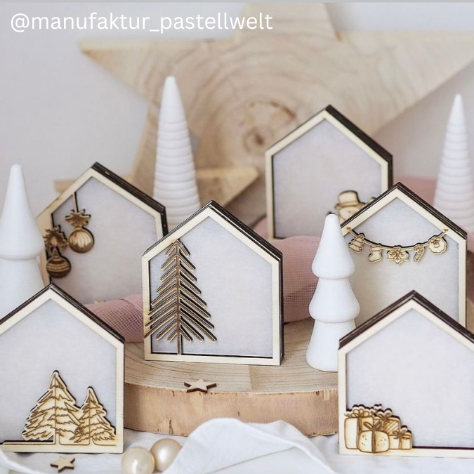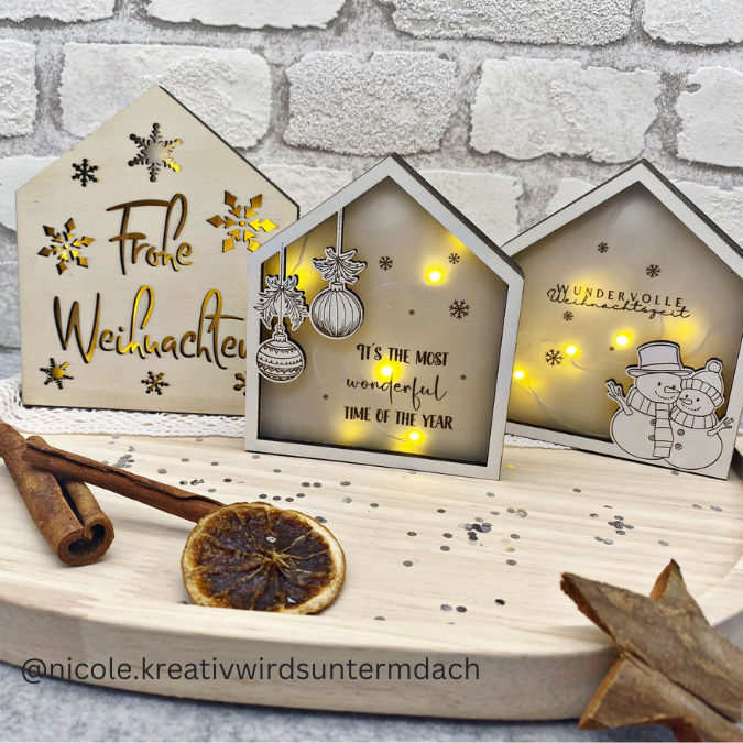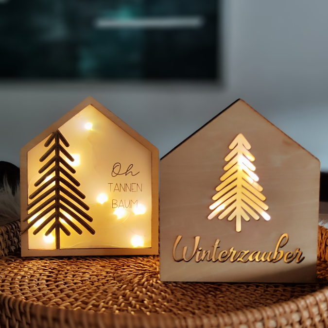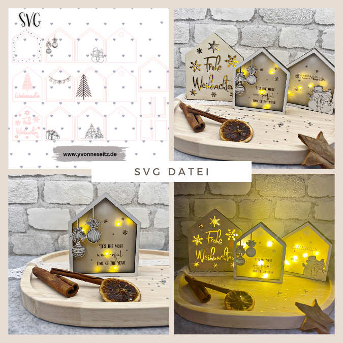 Weihnachten Winter Lichthaus Lichthäuser für Transparentpapier inkl PDF zum ausdrucken Laserdatei SVG Laser Datei