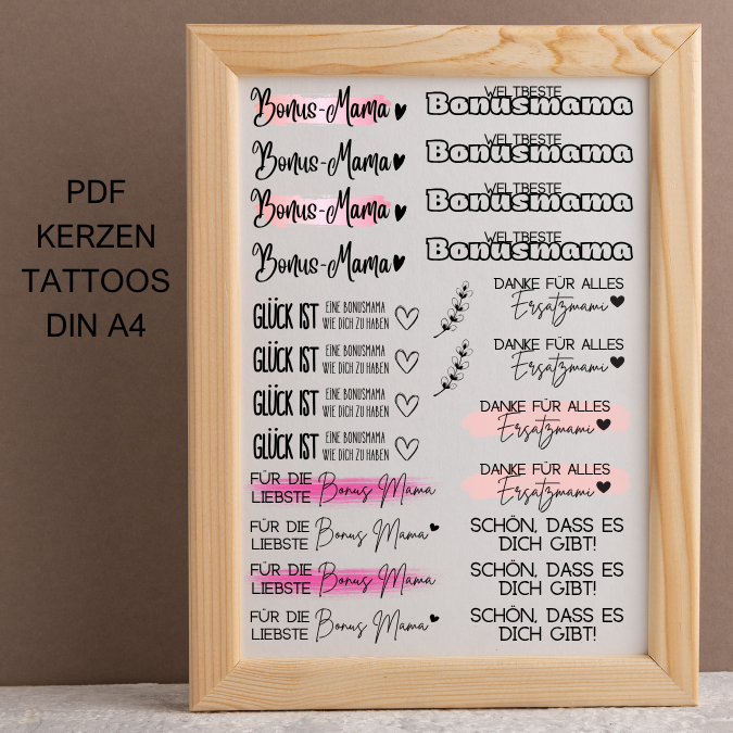 PDF – Kerzentattoo Vorlage – Bonus Mama / Stiefmutter – A4 Kerzentattoos zum selber drucken