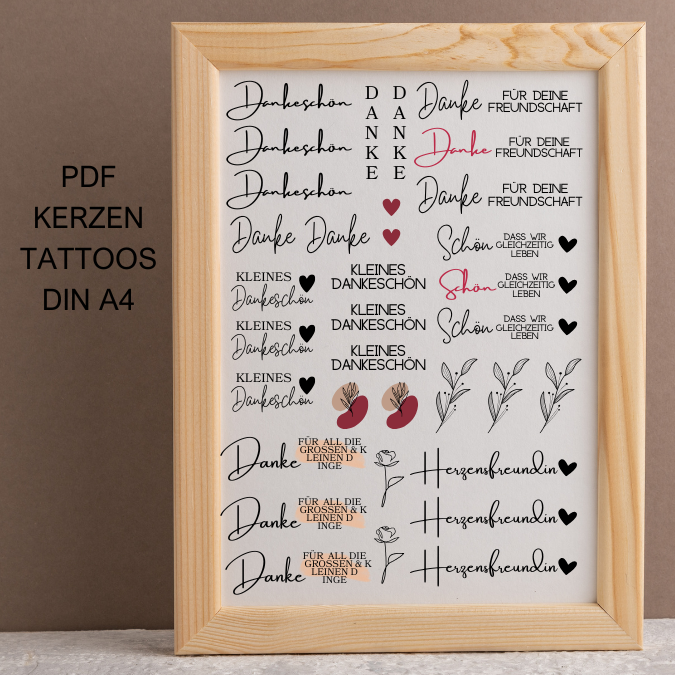 PDF – Kerzentattoo Vorlage – Dankeschön- A4 Kerzentattoos zum selber drucken