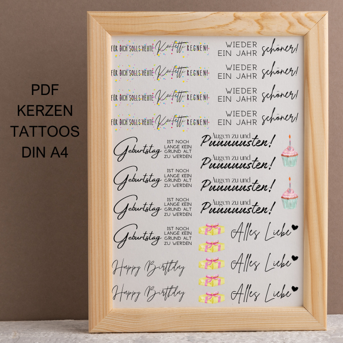 PDF – Kerzentattoo Vorlage – Geburtstag für dich soll es Konfetti regnen- A4 Kerzentattoos zum selber drucken