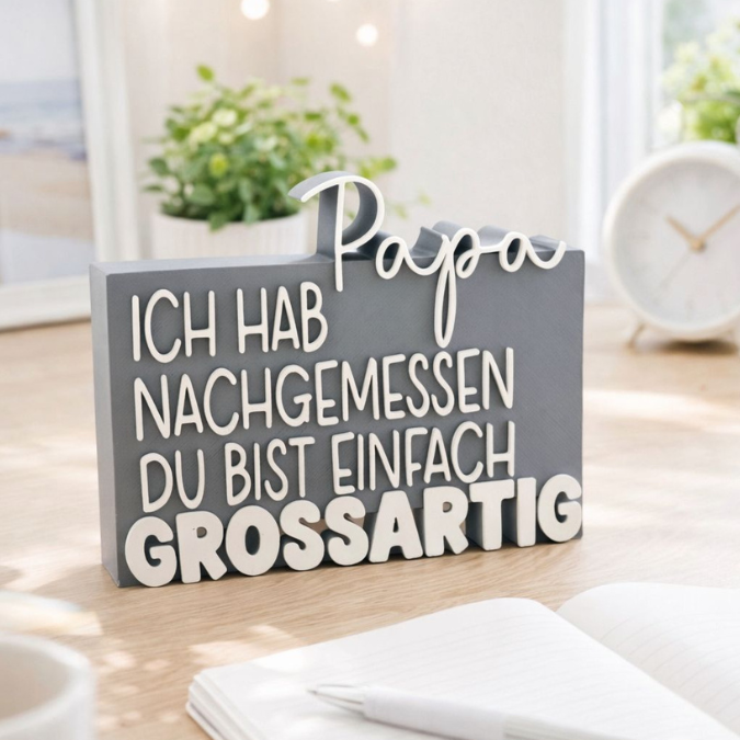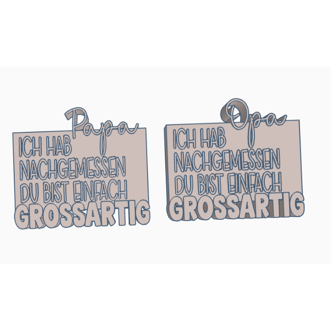 STL 3D Druck Datei 2er Set Aufsteller Vatertag Papa Opa Geschenkidee Männer ich hab nachgemessen du bist großartig 3D-Datei