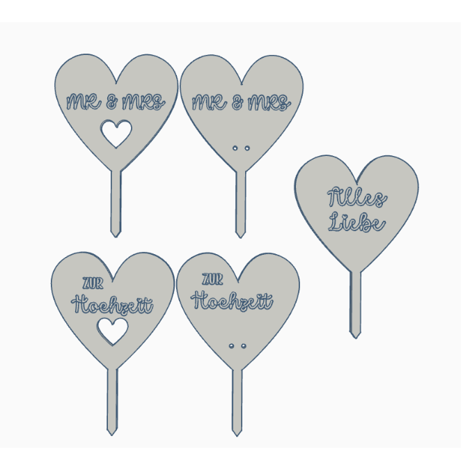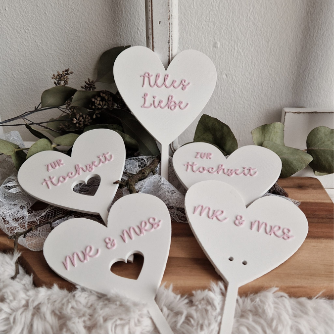 STL 3D Druck Datei 5 Designs Herzstecker Hochzeit Geldgeschenk Mr Mrs Pflanzenstecker Caketopper 3D-Datei Hochzeitsgeschenk 3d-druck