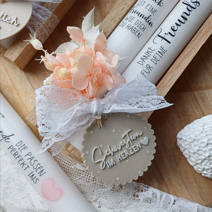 Bitte niemals echte Kerzen auf/in den gedruckten Produkten verwenden. Kerzen auf den Fotos dienen nur zur Dekoration.