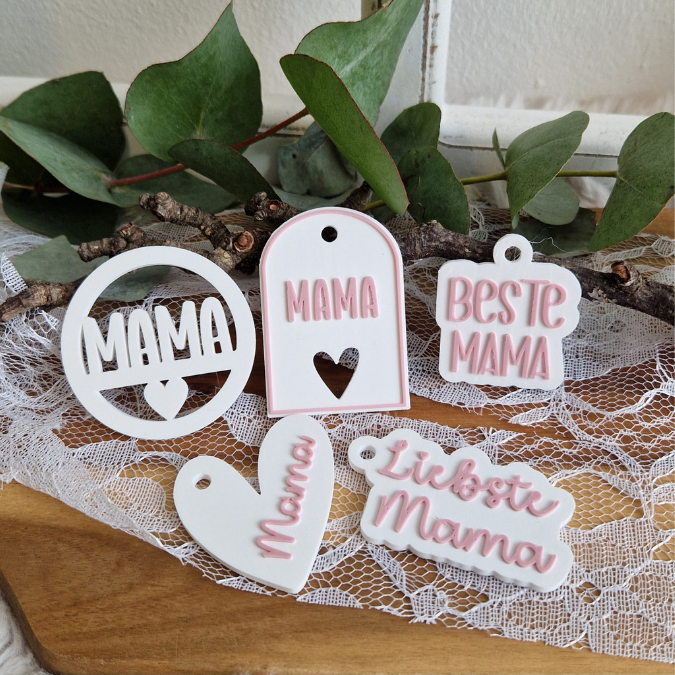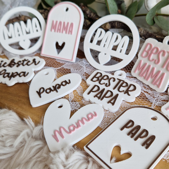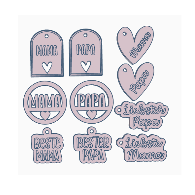 STL 3D Druck Datei Geschenkanhänger in 10 Designs Mama Papa Muttertag Vatertag Geschenkidee Herzanhänger 3D-Druck Datei