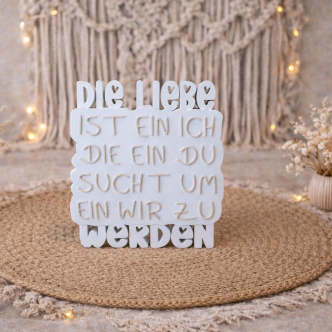 STL 3D Druck Datei Liebe Schriftzug „Die Liebe ist ein ich die ein du sucht um ein wir zu werden“ 3D Datei zur Hochzeit Paar Romantisch