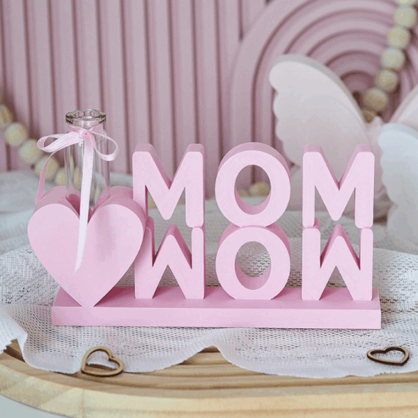 STL 3D Druck Datei Schriftzug MOM WOW mit Herz zum füllen Muttertag 3D-Druck Datei