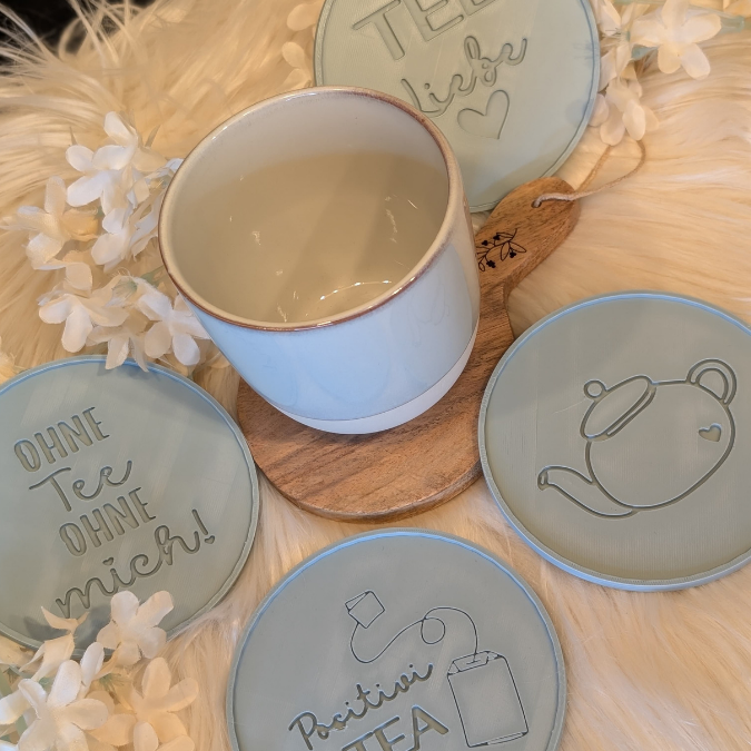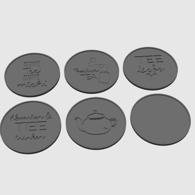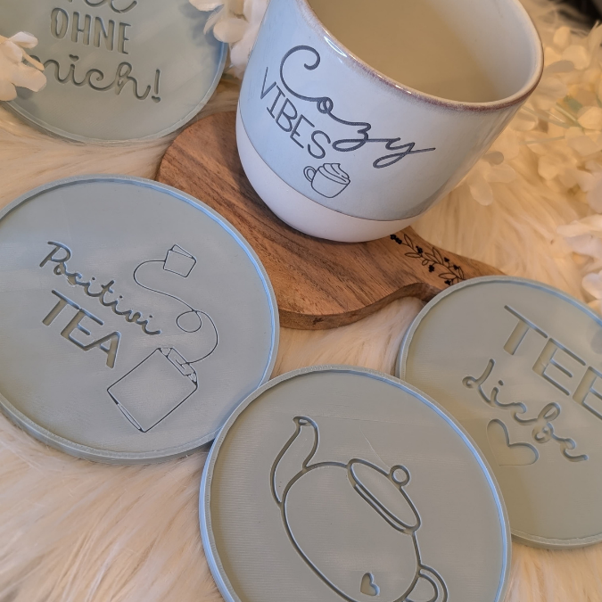 STL 3D Druck Datei Untersetzer Tee Teeliebe 6 Designs für Tassen Teetasse Positivitea 3D-Datei 3D-Druck Vorlage