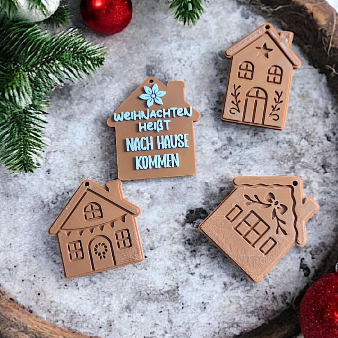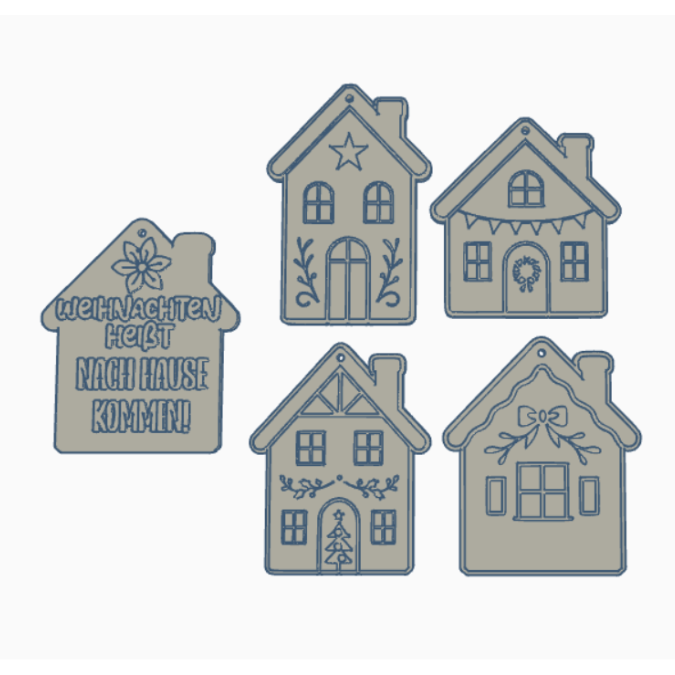 STL 3D Druck Datei Weihnachten 5er Set Anhänger Häuser Haus Weihnachtshaus Geschenkanhänger Baumanhänger Skandi 3D-Datei 3D-Druck Vorlage
