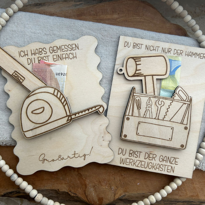 SVG Datei Karten für Gutscheine oder Geld Werkzeug Männer Geschenkidee für Papa Vatertag Opa Mann SVG Laserdatei Laserfile Lasercut Männergeschenk Mann Vater