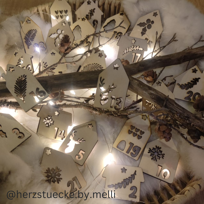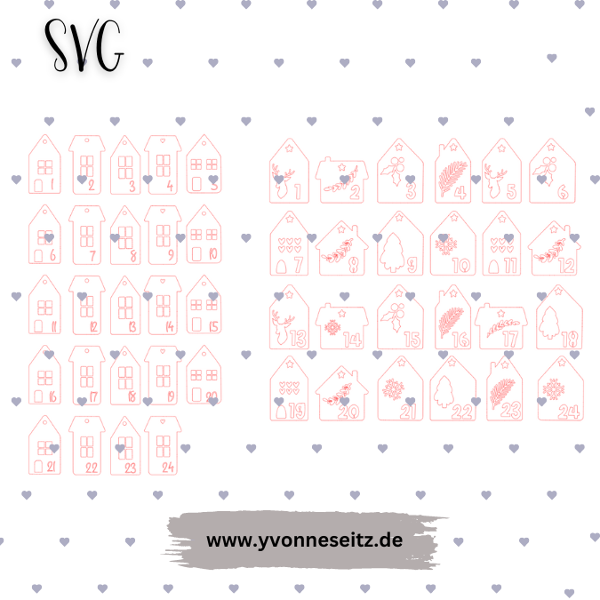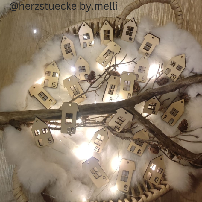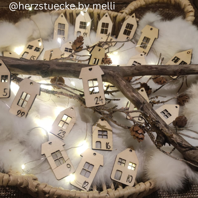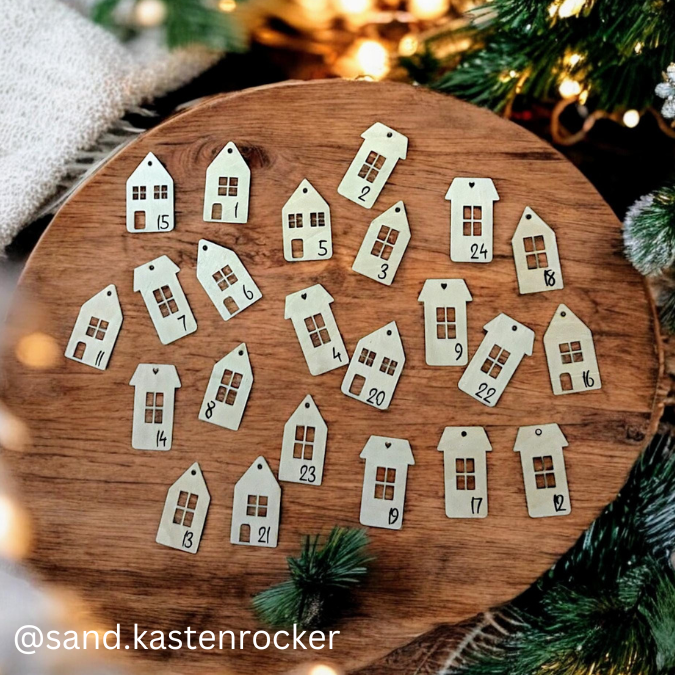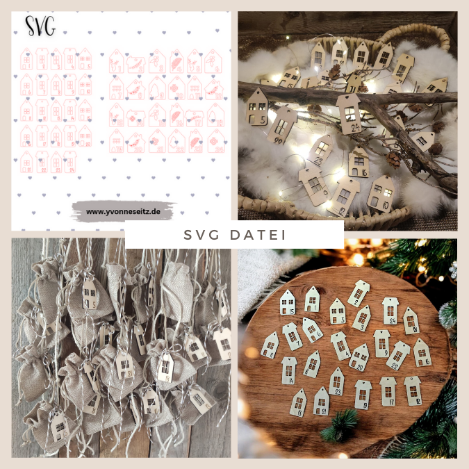 SVG Laser Datei Zahlen 1-24 Häuser Haus Adventskalenderanhänger Anhänger Adventskalender