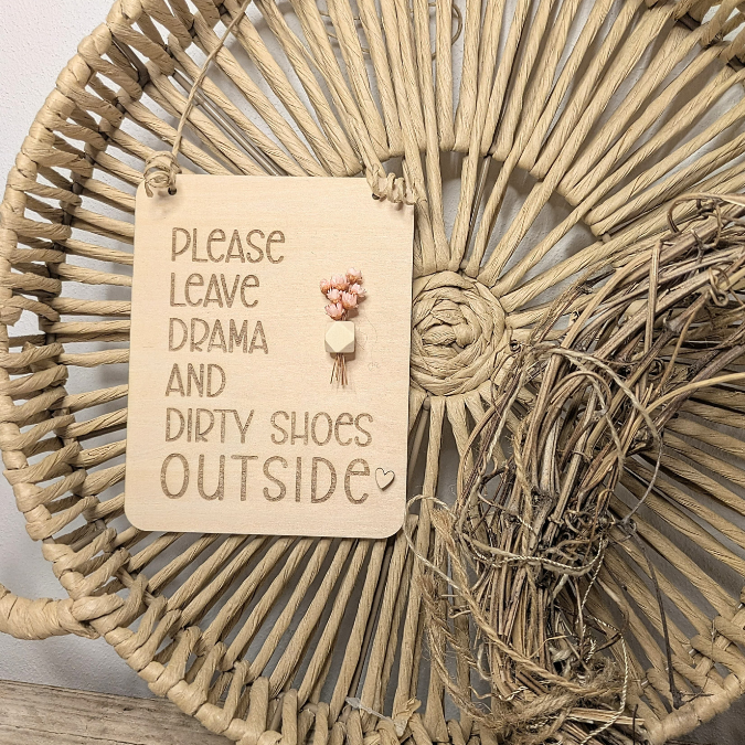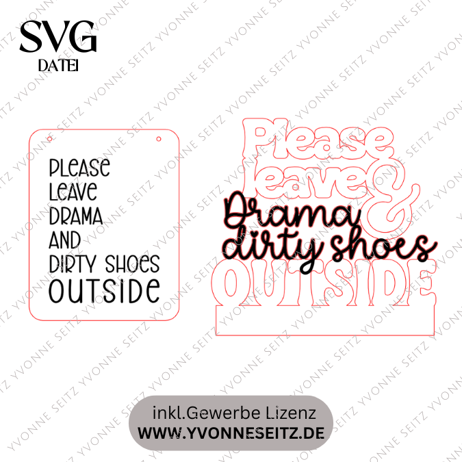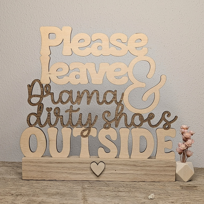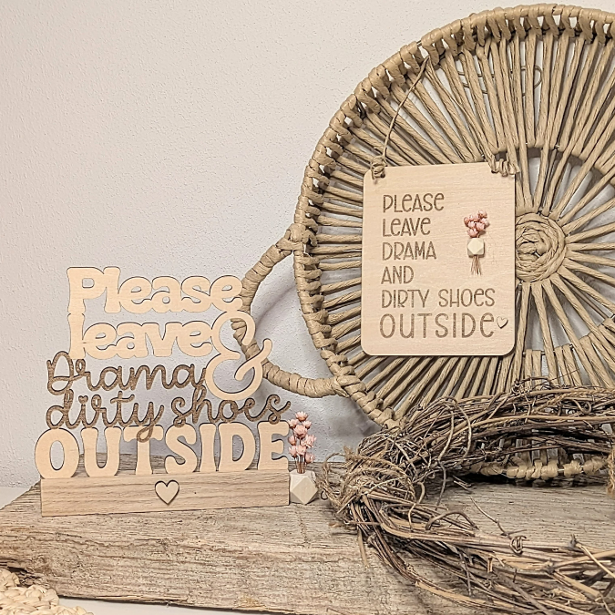 SVG Laser Datei Klötzchenaufsteller Easysticks und Wanddeko „Please leave Drama and dirty shes outside“ quote Eingangsbereich SVG-Laserdatei