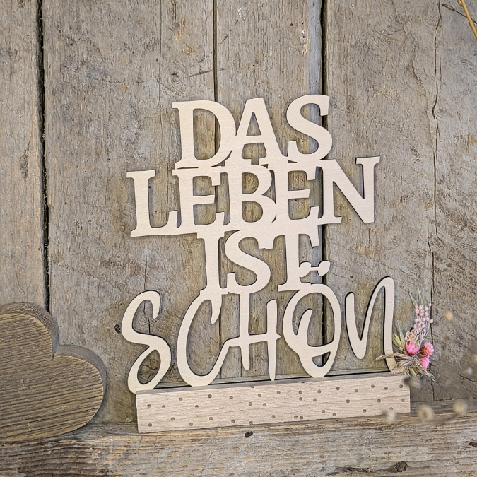 Schriftzug im Rahmen bei unveränderter Größe zB. zwischen Klötzchen oder Easy Sticks kleben.