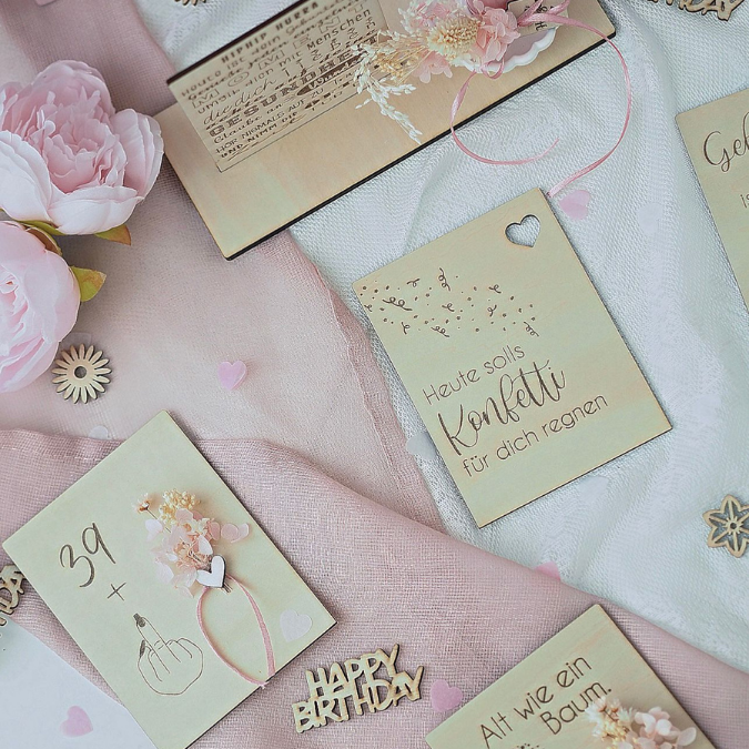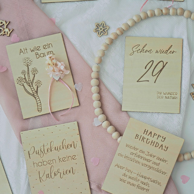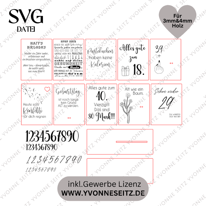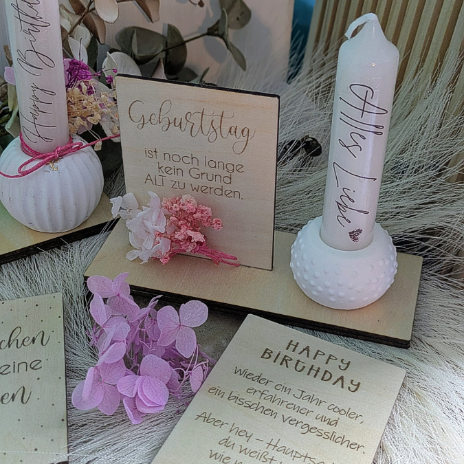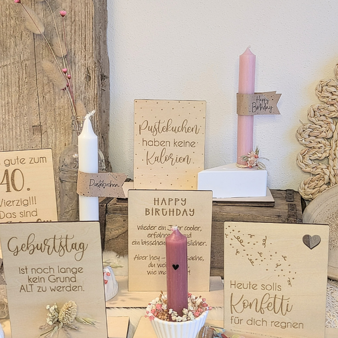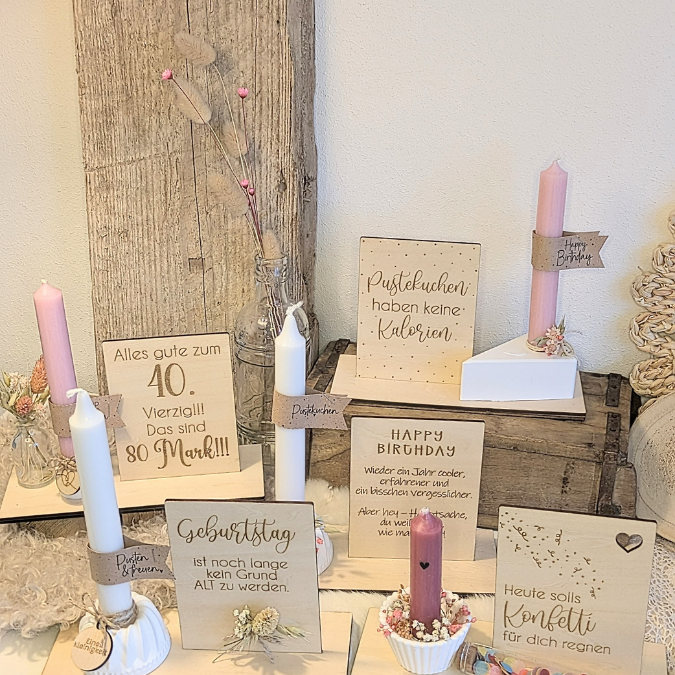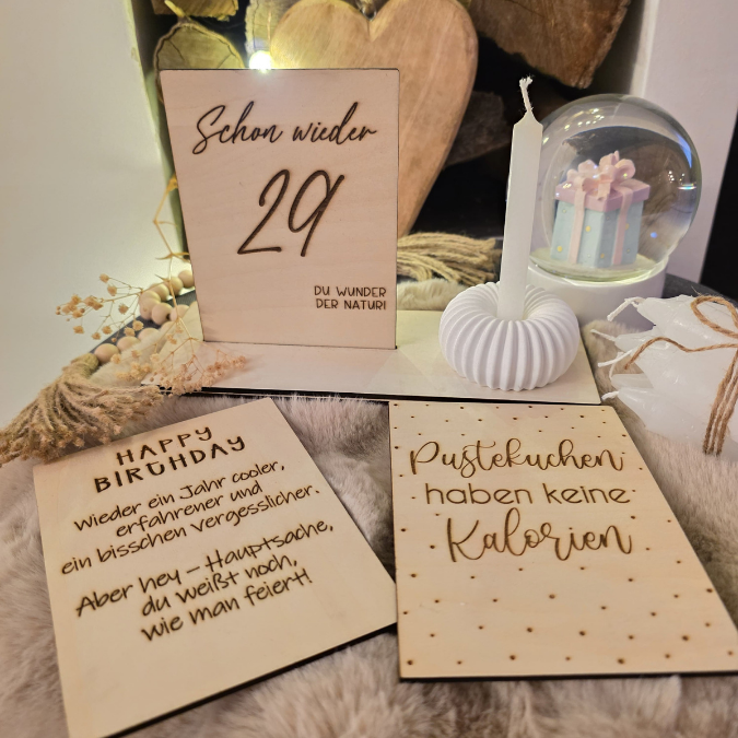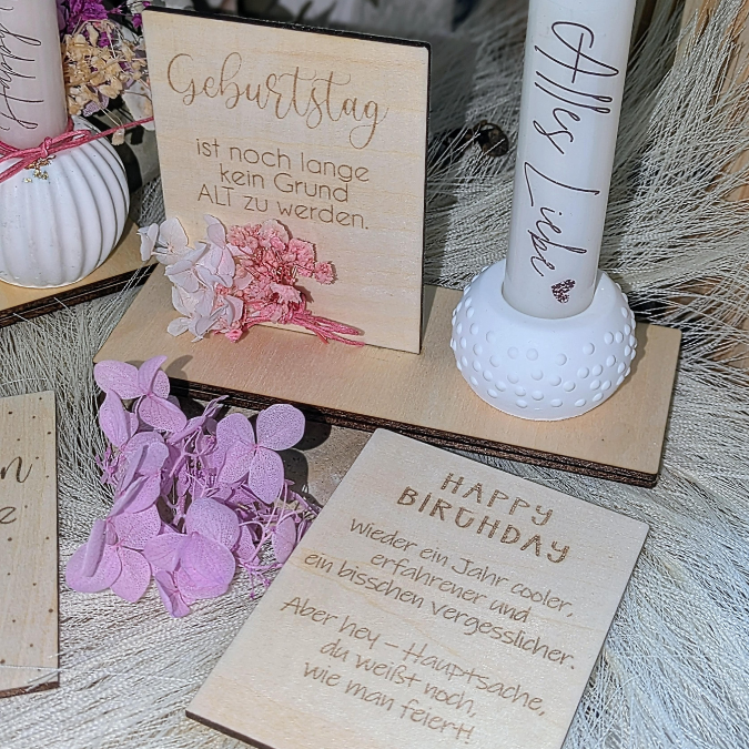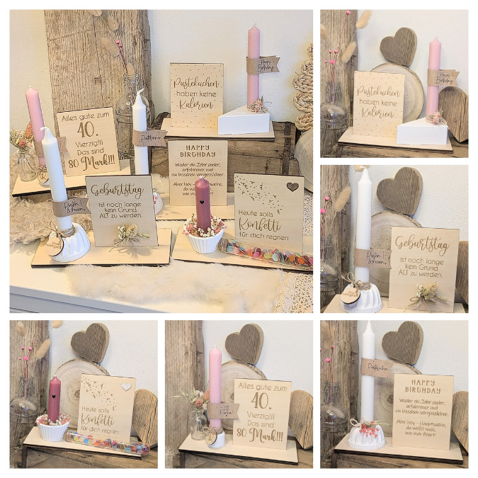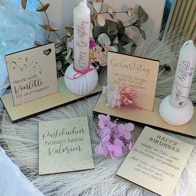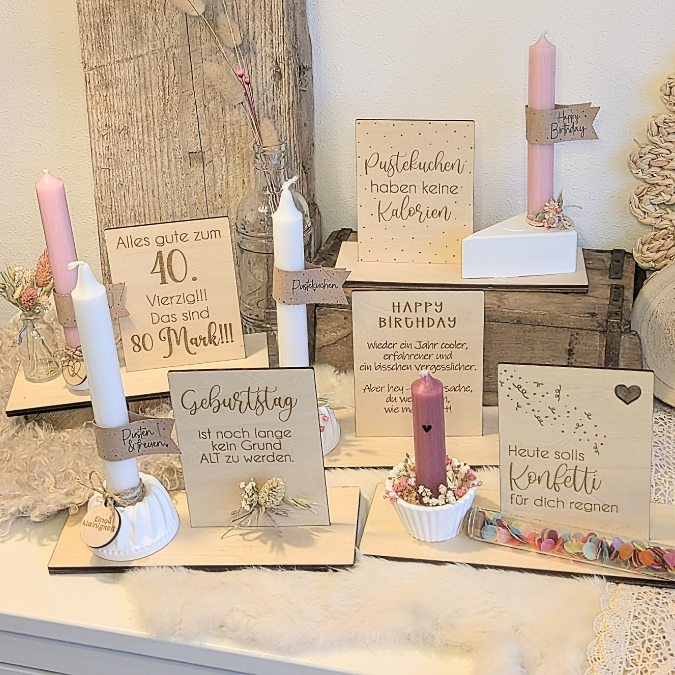 SVG Laserdatei 10 designs Aufsteller 3mm 4mm Geburtstag mit Platz für Kleingkeiten, Blumen, Kerze Pustekuchen SVG-Datei geburtstagsgeschenk