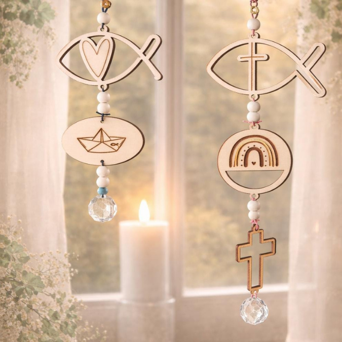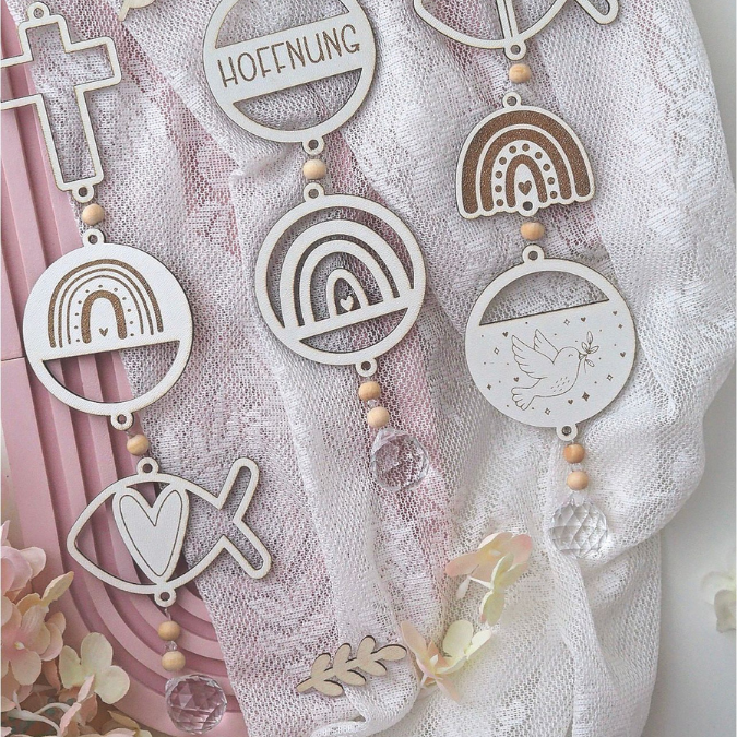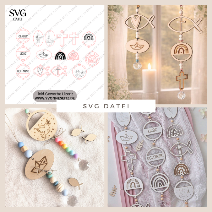 SVG Laserdatei 15 designs Sonnenfänger Kirchlich Kirche Konfirmation Kommunion Firmung Taufe Geschenk Anhänger SVG-Datei Glaube Regenbogen