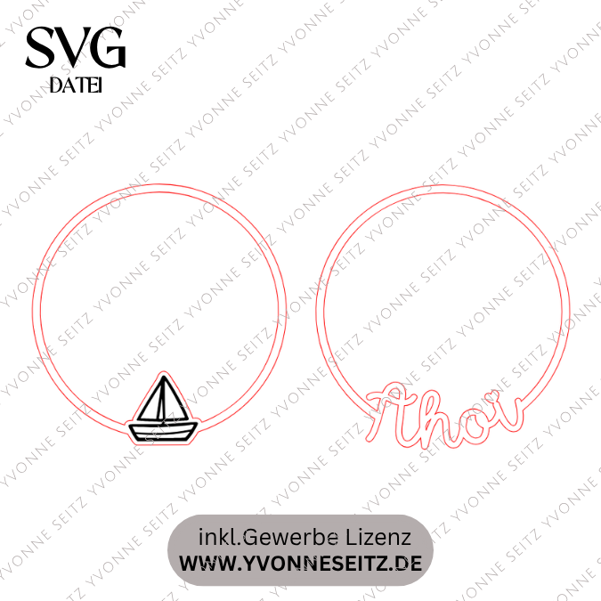 SVG Laserdatei 2 Designs Kranz Kränze Ahoi Segelboot Maritim Urlaub Meer Urlaub Ostsee Nordsee Sommer Heimathafen SVG Datei