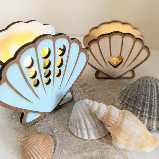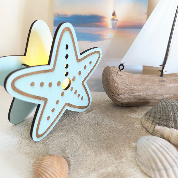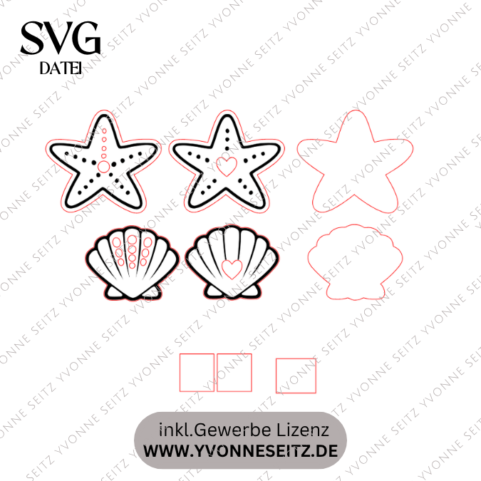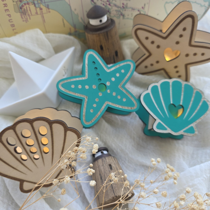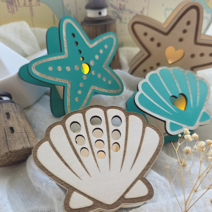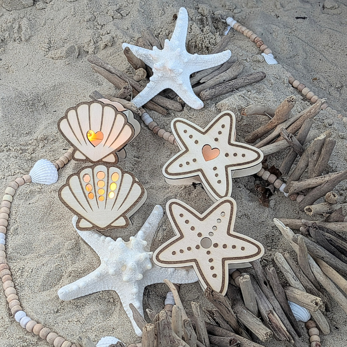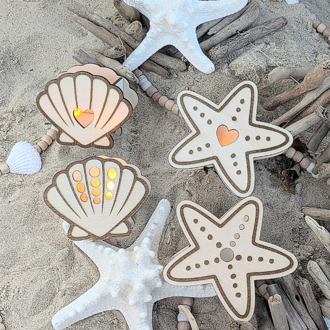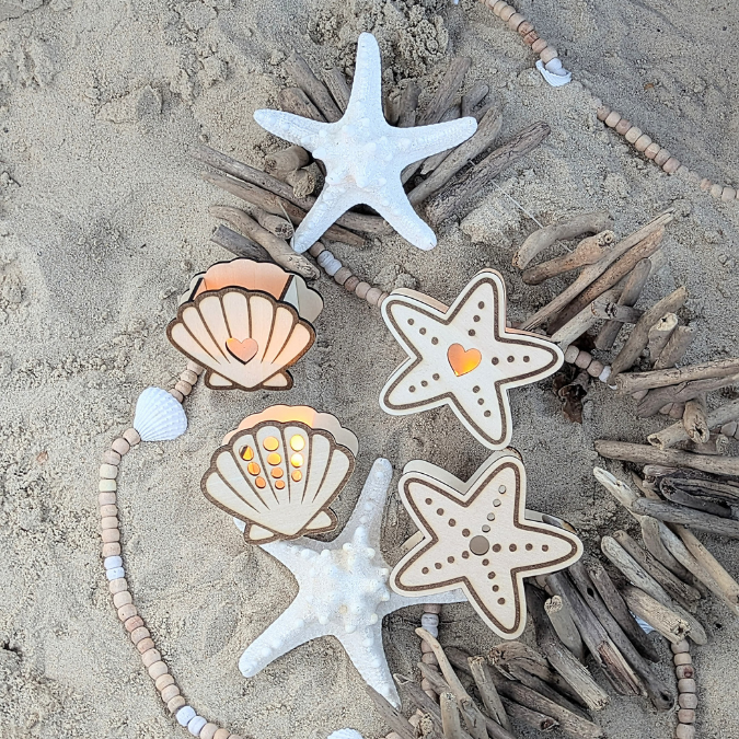 SVG Laserdatei 4 Designs Muschel und Seestern zum füllen mit Blumen, Geld oder Ballonlicht Sommer Maritim Lichtdatei Leuchtdeko SVG-Datei