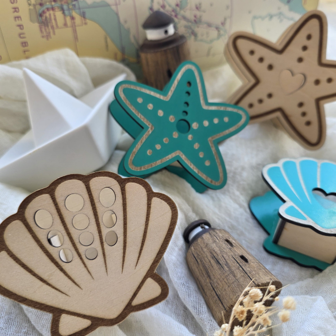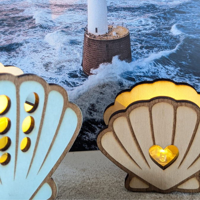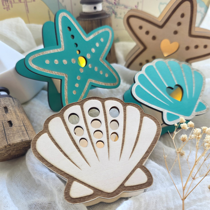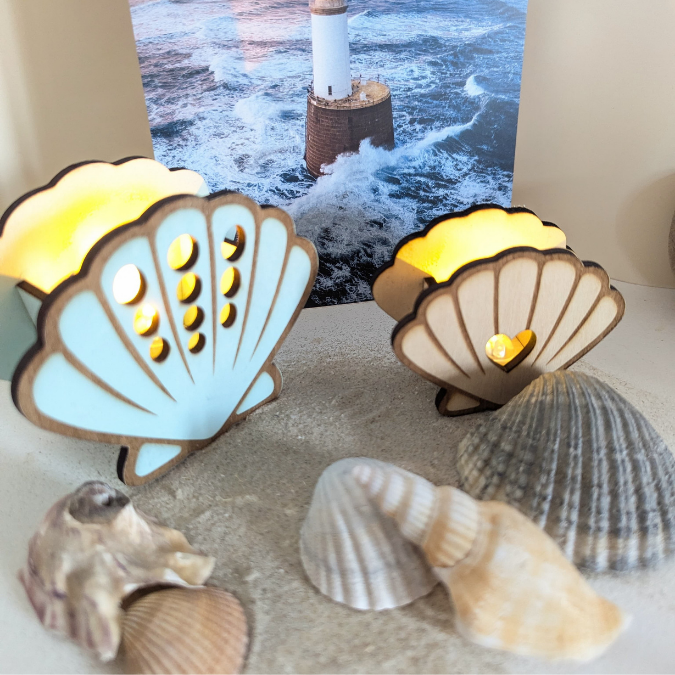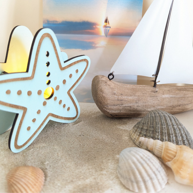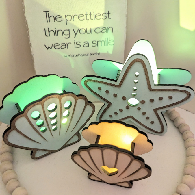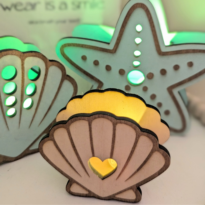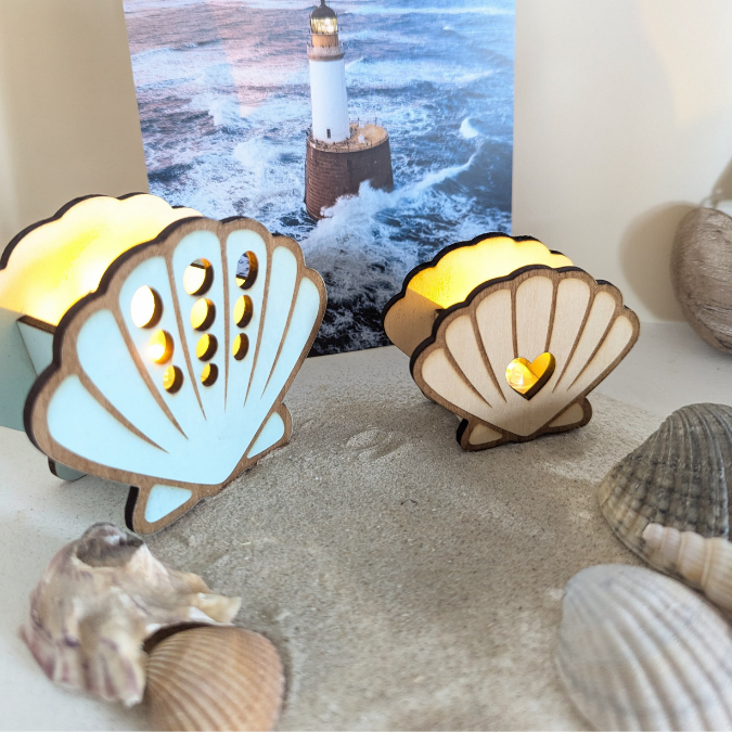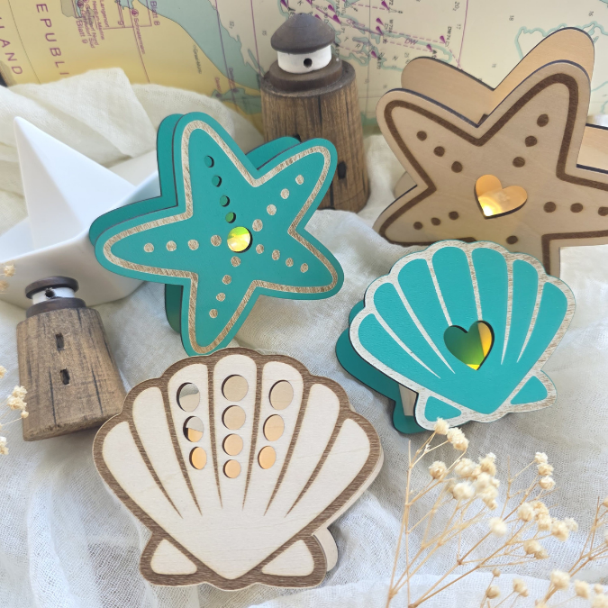 SVG Laserdatei 4 Designs Muschel und Seestern zum füllen mit Blumen, Geld oder Ballonlicht Sommer Maritim Lichtdatei Leuchtdeko SVG-Datei