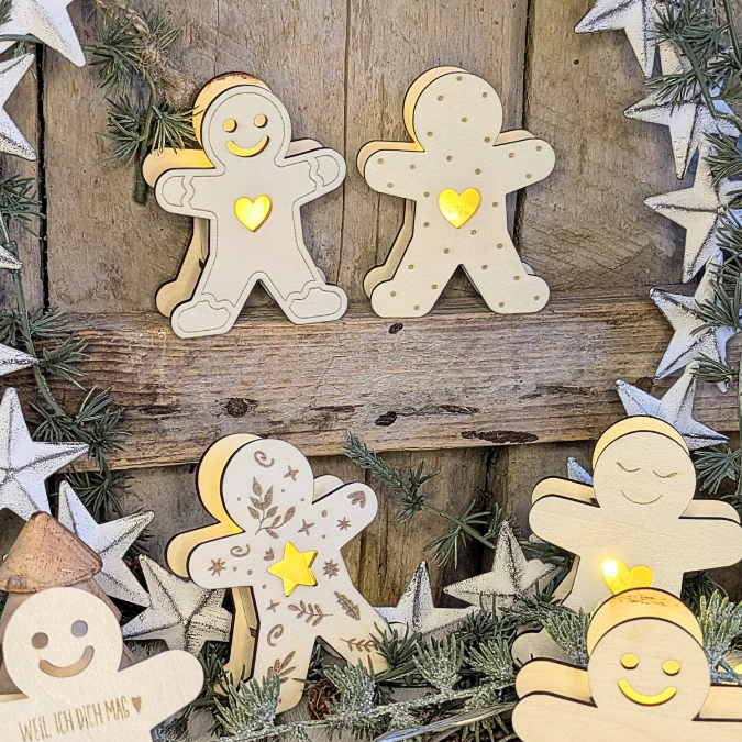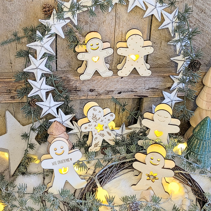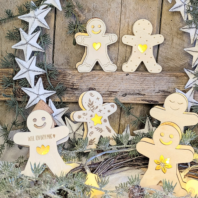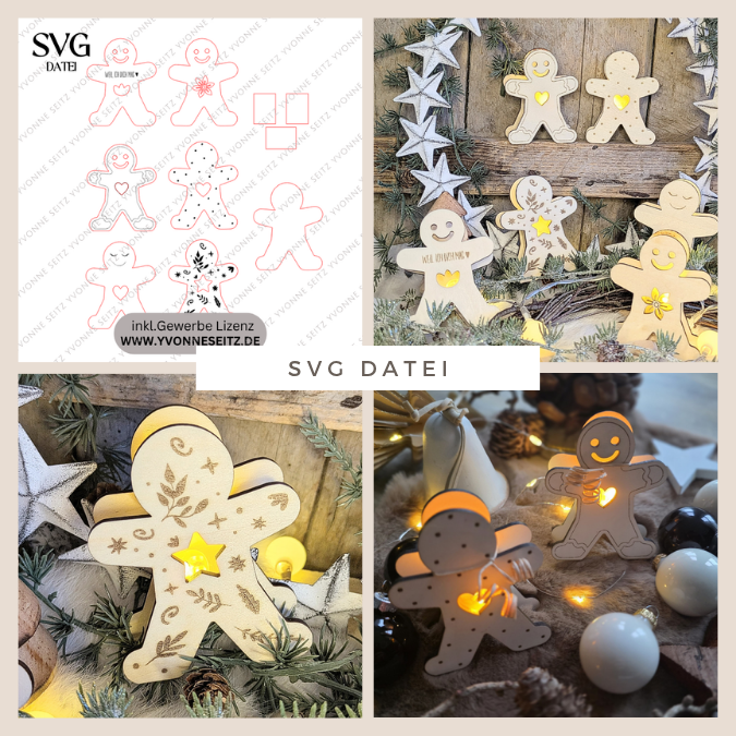 SVG Laserdatei 6 Designs Lebkuchenmann Mini Lebkuchenmännl zum füllen mit Blumen, Geld oder Ballonlicht Weihnachten Mitbringsel SVG-Datei