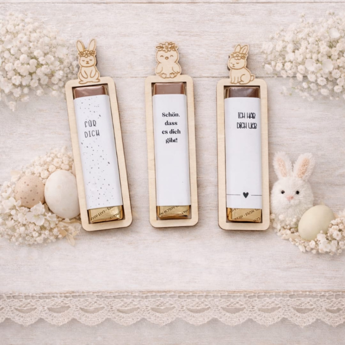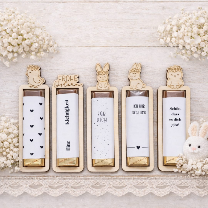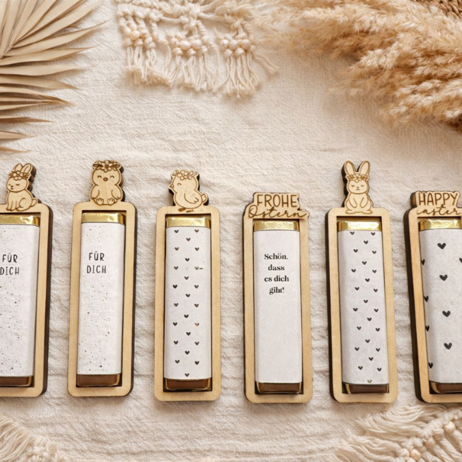 SVG Laserdatei 6 Designs Ostern Halter für Schokoriegel Merci Kinderriegel Yogurette als kleines Mitbringsel SVG Datei Osterschokolade