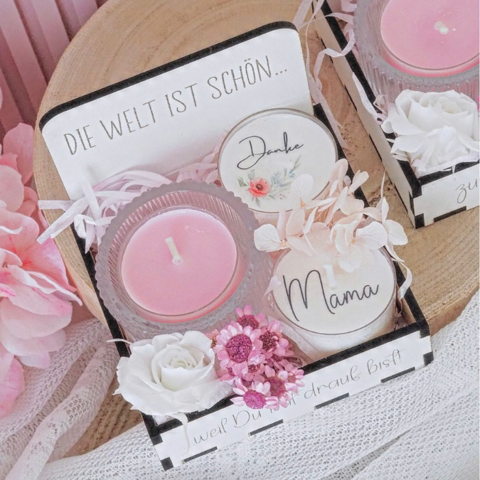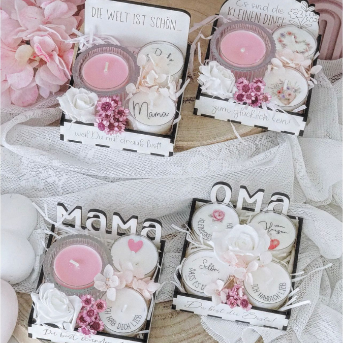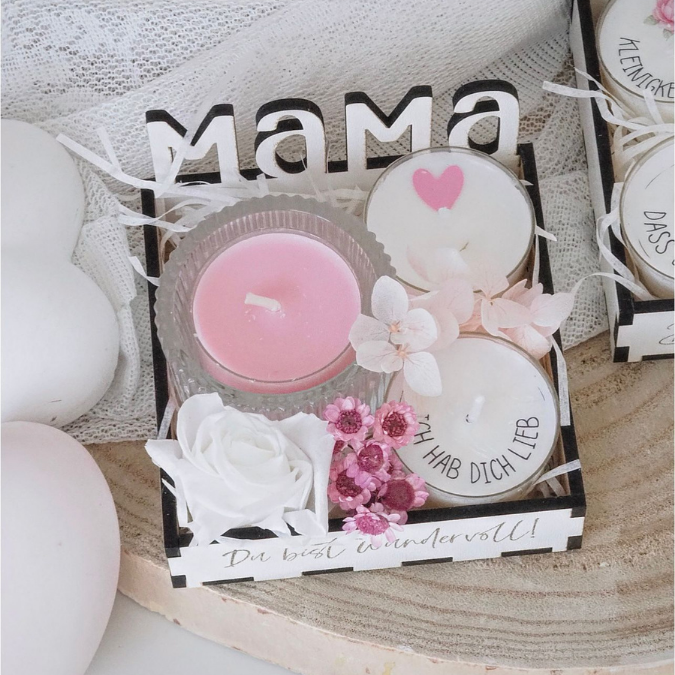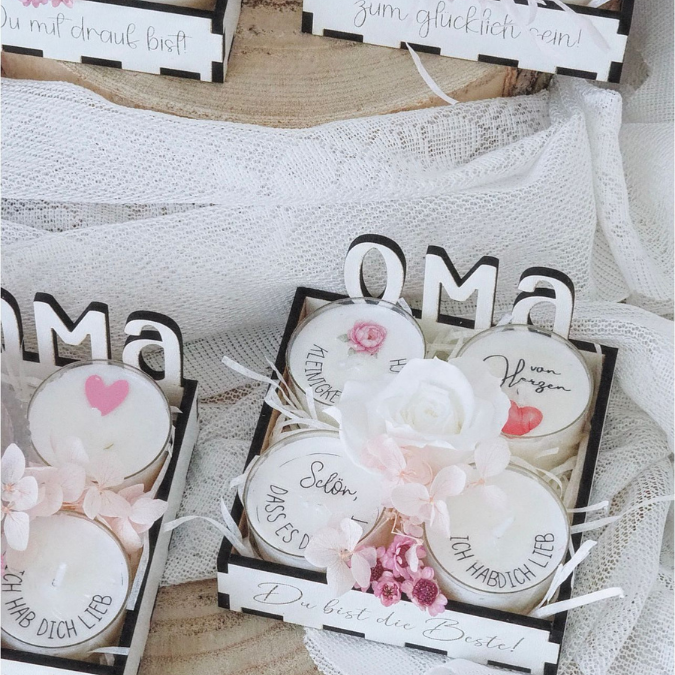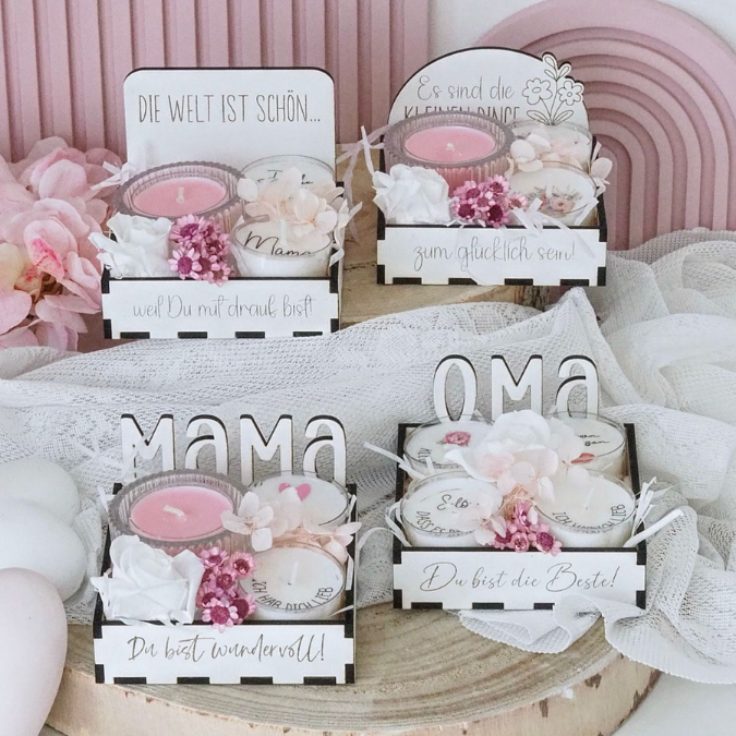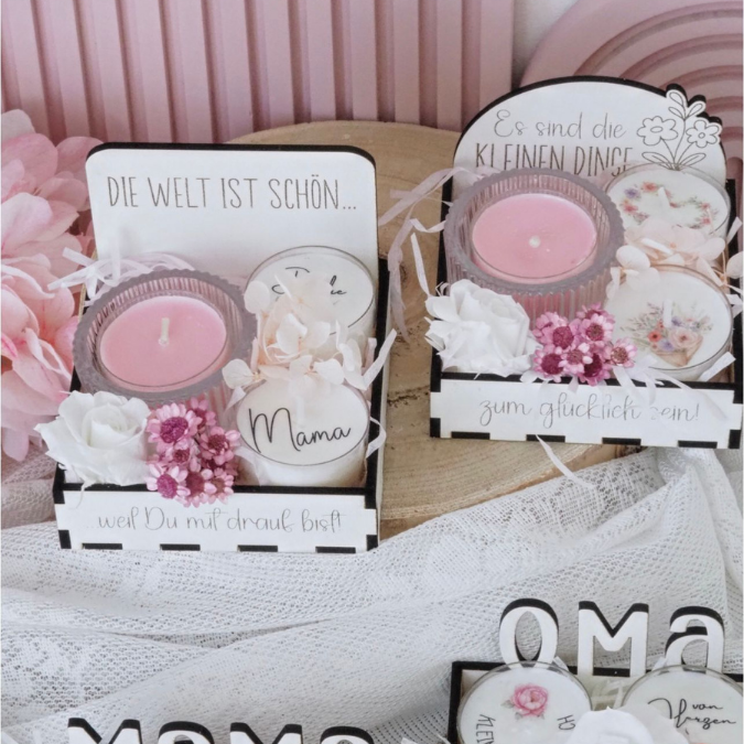 SVG Laserdatei Box für 4 Teelichter Muttertag Oma Beste Freundin Mama Beste Mama Geschenk zum Muttertag Großmutter Geschenkidee SVG Datei