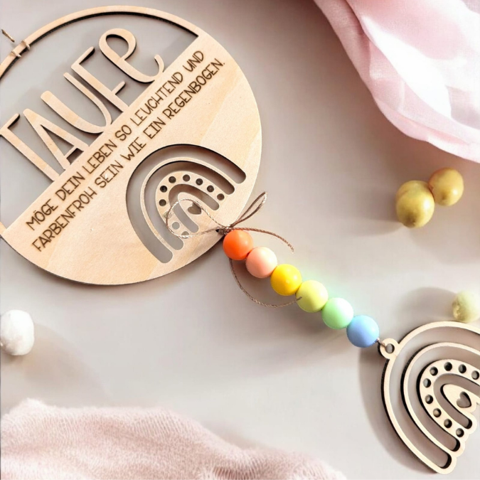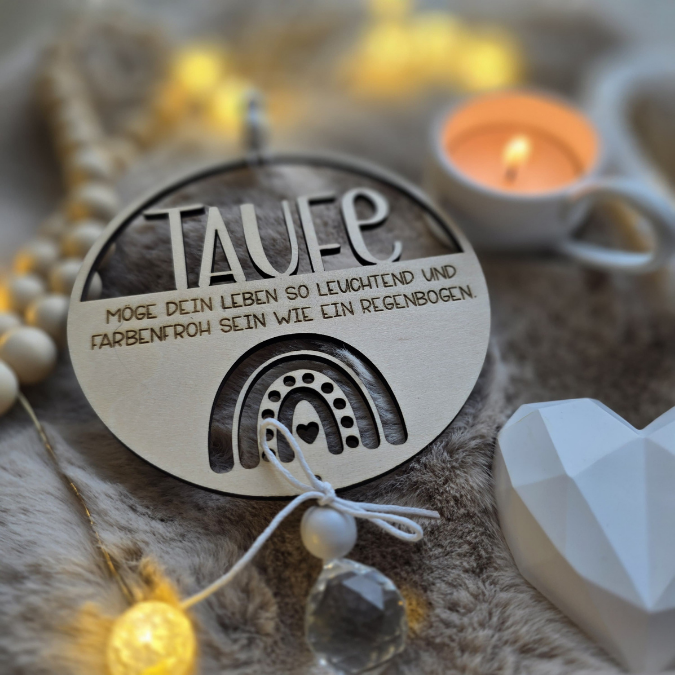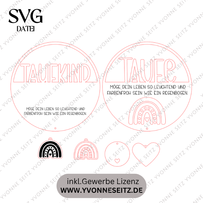 SVG Laserdatei Kranz 2 Designs inkl Sonnenfänger Anhänger Geschenk zur Taufe Kirchlich Kirche Geschenkanhänger SVG-Datei Glaube Regenbogen