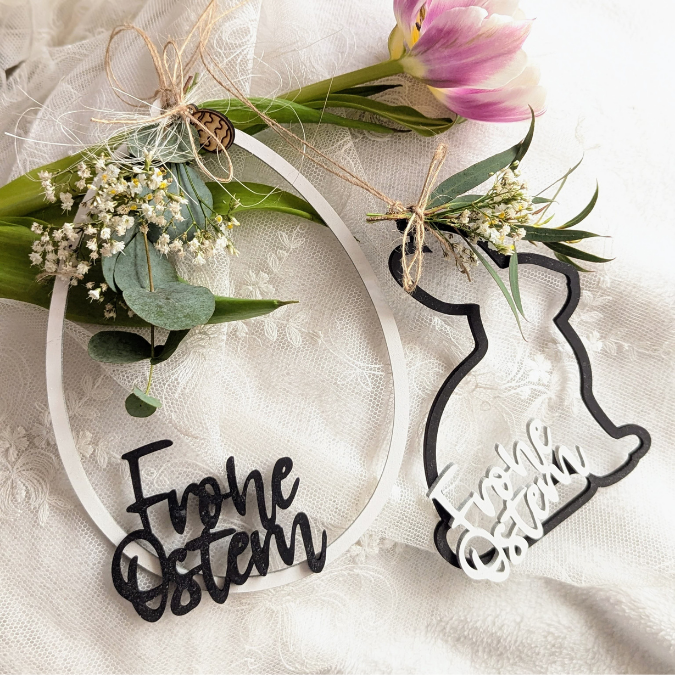 SVG Laserdatei Osteranhänger Aufhänger Geschenkanhänger Anhänger Laser Osterei Osterhase Hase Lamm Kücken Ei Karotte Osterdeko SVG Datei