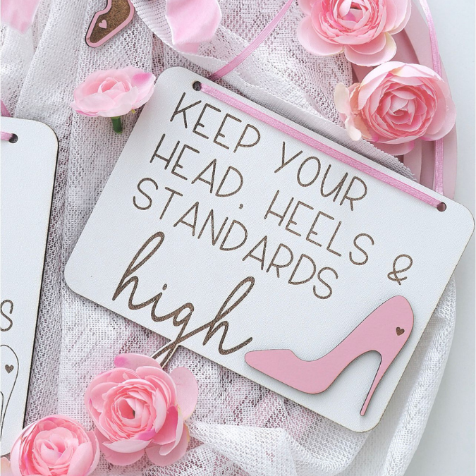 SVG Laserdatei Statement Schilder „Keep your head, heels and standards high“ 2 Designs Geschenkidde für beste Freundin Frauen SVG-Datei