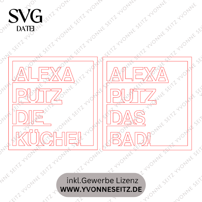 SVG Laserdatei Wanddeko Wandbilder Wandbild Rahmen ALEXA putz das Bad & Alexa putz die Küche SVG Datei