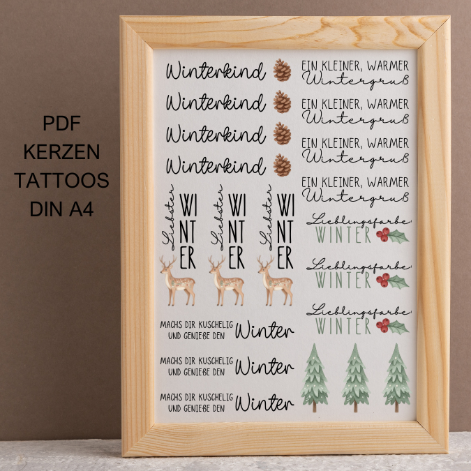 Winterkind Winterliebe PDF Kerzen Tattoo Vorlage A4 Kerzentattoos zum selber drucken Kerzensticker DIGITALE DATEI für Wasserschiebefolie